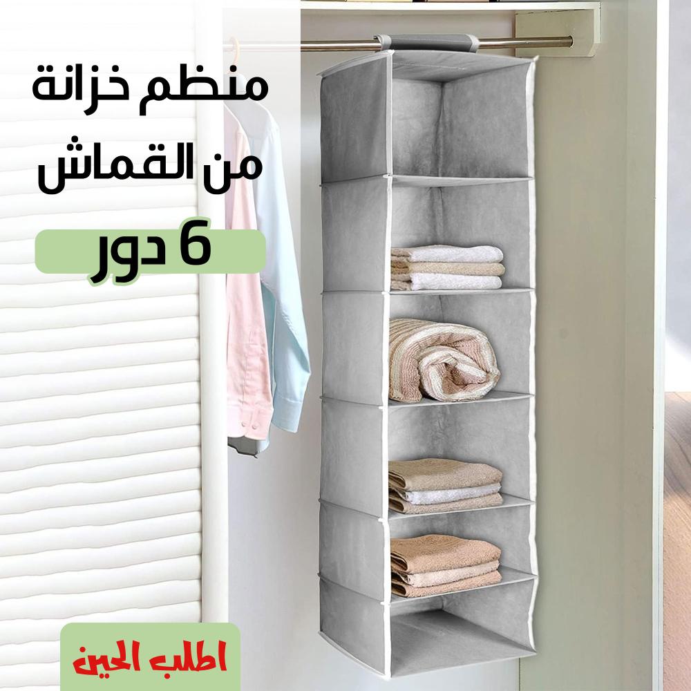 منظم خزانة الملابس من القماش بـ 6 دور يوفر حلاً عمليًا لتنظيم الملابس والأغراض الصغيرة، يحافظ على ترتيب الخزانة ويوفر مساحة إضافية بطريقة سهلة وفعالة.